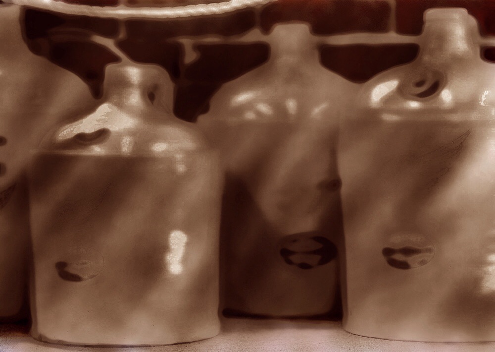 They went along on every camping trip. My grandfather would load them up in the old station wagon, along with all the camping gear, grandmother and grandchildren. They were stone crocks. One in particular was reserved for drinking water only. It had a cork stopper in the top.