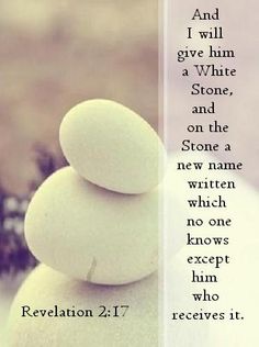 17 “Anyone with ears to hear must listen to the Spirit and understand what he is saying to the churches. To everyone who is victorious I will give some of the manna that has been hidden away in heaven. And I will give to each one a white stone, and on the stone will be engraved a new name that no one understands except the one who receives it. (NLT)